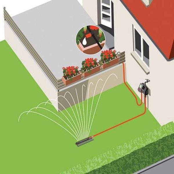 Gebruik Voor het besproeien van twee verschillende tuinsectoren, bijvoorbeeld, het gazon achter het huis en het bloemenbed aan de voorkant