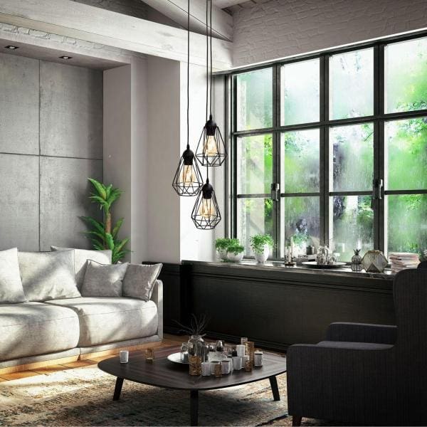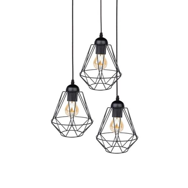 Deze moderne hanglamp past in elk interieur, het stalen frame is hoogwaardig afgewerkt met een mat zwarte poedercoating en drie lichtpunten geven de hanglamp een stijlvolle uitstraling.