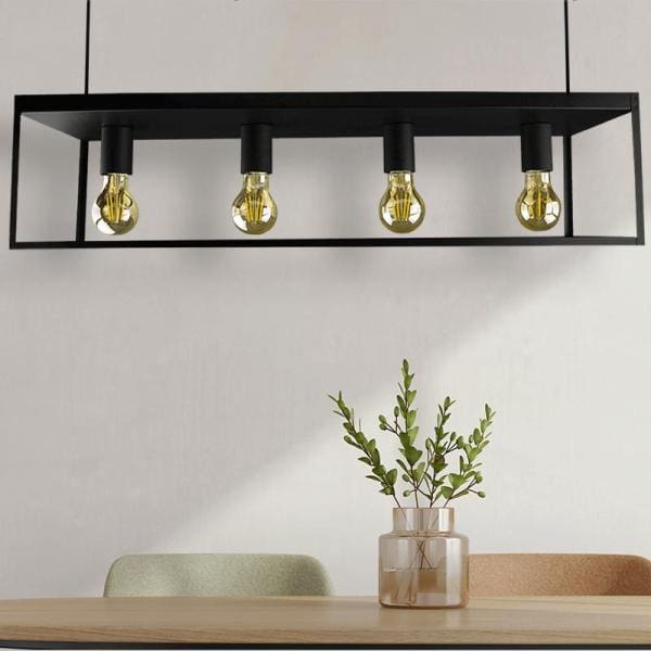Breng sfeer in jouw woonkamer of restaurant met deze plafondlamp met industriële look. De rechthoekige plafondlamp geeft een unieke uitstraling aan iedere woonkamer en ieder restaurant. Het rechthoekige metalen frame van de plafondlamp is robuust en in matzwart afgewerkt. Hierdoor gaat de plafondlamp in bijna iedere woonkamer helemaal op in het interieur. De stalen constructie is eigenzinnig en een echte eyecatcher voor iedereen die zijn of haar woning naar moderne trends wil inrichten.